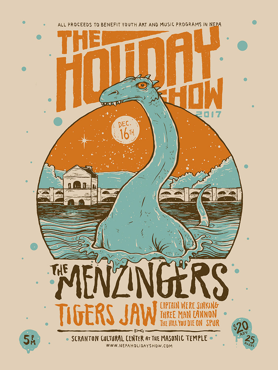 Posters for The Menzingers' annual Holiday Show, whose proceeds benefit youth art and music programs in NEPA.